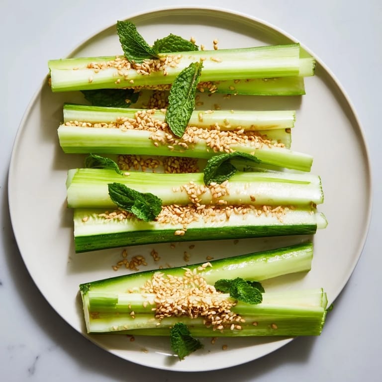 Minimalistische Rezepte unterrichten uns etwas über Vertrauen—Vertrauen in die Qualität der Zutaten, Vertrauen in die Klarheit der Geschmäcker. Ich habe gelernt, dass jede Zutat hier einen Zweck hat. Das Sellerie bringt die herbale Note, die Gurke die erfrischende Süße, und die Soße bringt alles zusammen. Es gibt nichts zu verstecken, nichts Überflüssiges zu verbessern.