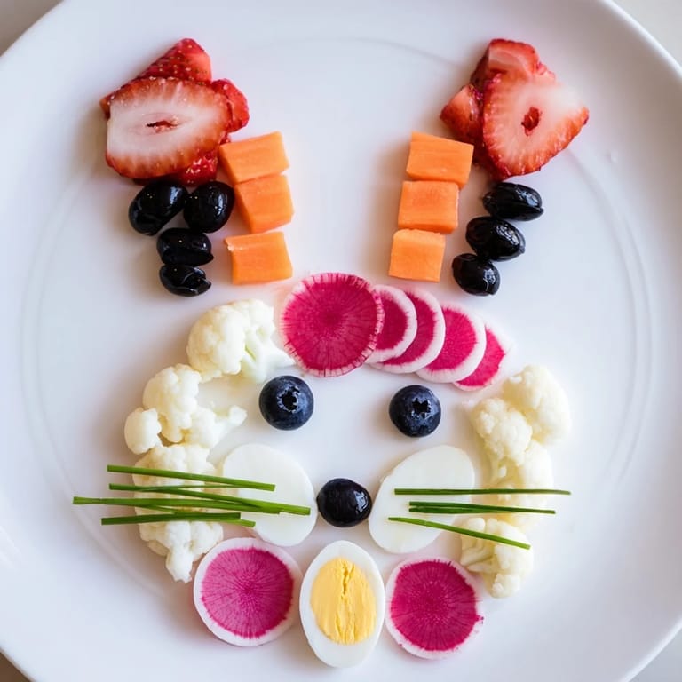 Merken Mein erstes Mal, als ich diese Kaninchen-Silhouette zusammengesetzt habe, war bei einer Osterfeier im Garten meiner Nachbarin, und ich erinnere mich noch genau an das Lachen der Kinder, als sie bemerkten, dass das Arrangement tatsächlich wie ein springendes Häschen aussah. Die Idee kam mir spontan, als ich in meinem Kühlschrank herumstöberte und bemerkte, wie schön die rosa und weißen Zutaten zusammenpassen würden. Es ist eine dieser seltenen Gerichte, bei denen die Zubereitung selbst schon das Fest ist—kein Backen, kein Kochen, nur deine Hände und deine Kreativität auf einem Tablett.