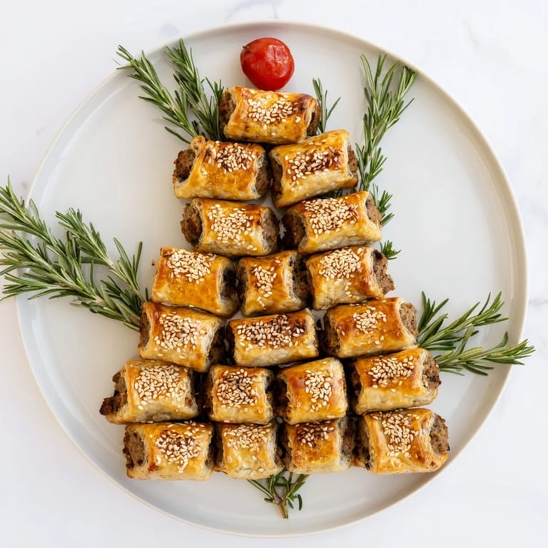 Merken Diese Mini-Würstchenrollen sind ein köstlicher und dekorativer Beitrag für Ihre Weihnachtstafel und lassen sich wunderbar vorbereiten.