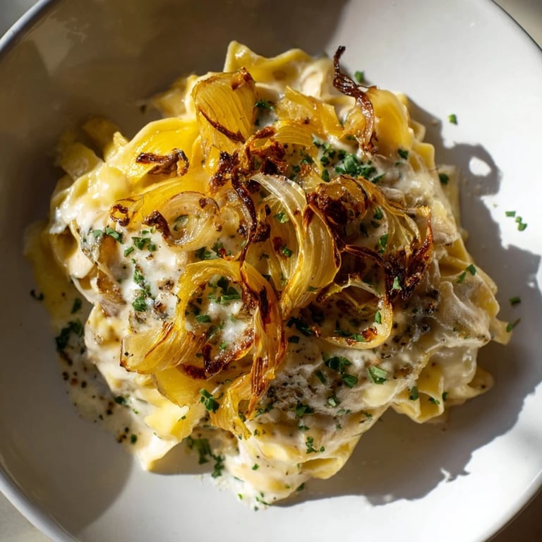 Meine Freundin Lena fragte damals skeptisch, ob Zwiebeln und Pasta wirklich zusammenpassen würden. Als sie den ersten Bissen nahm und ihre Augen weit aufgingen, wusste ich, dass dieses Gericht etwas Besonderes war. Seitdem ist es unser liebster Winterkomfort, wenn die Tage kurz werden und wir etwas Wärmendes brauchen.