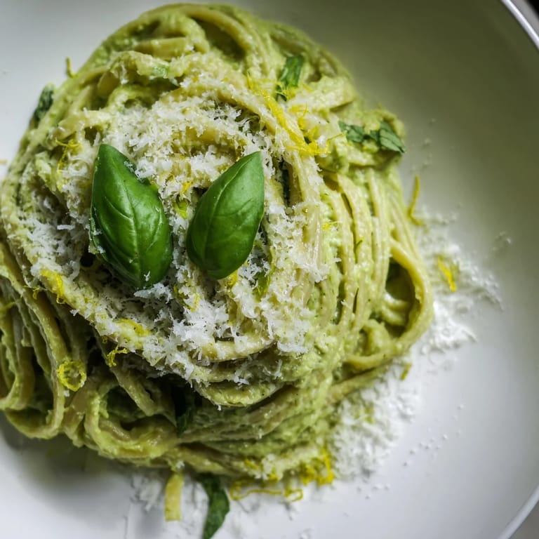 Merken Ich entdeckte dieses Rezept an einem schwülen Nachmittag, als ich mit leeren Händen in meiner Küche stand und nur ein paar überreife Avocados auf der Arbeitsplatte hatte. Mein erster Gedanke war, sie auf Toast zu schmieren, aber dann fiel mir ein, dass ich noch Pasta im Schrank hatte, und plötzlich war die ganze Idee da. Eine halbe Stunde später hatte ich diesen cremigen, grünen Traum auf meinem Teller, und ich habe nie wieder zurückgeblickt.