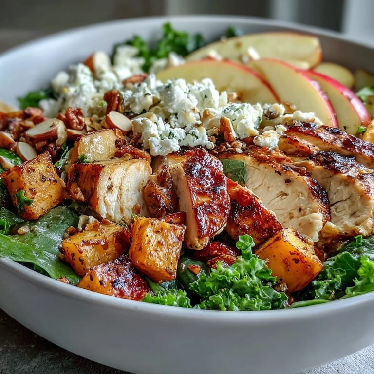 Merken As the air turns crisp and the leaves begin to change, there is nothing more comforting than a Fall Sweet Potato Harvest Bowl. This vibrant, nourishing dish captures the very essence of autumn, combining savory roasted chicken and caramelized sweet potatoes with the fresh crunch of sliced apples and kale.