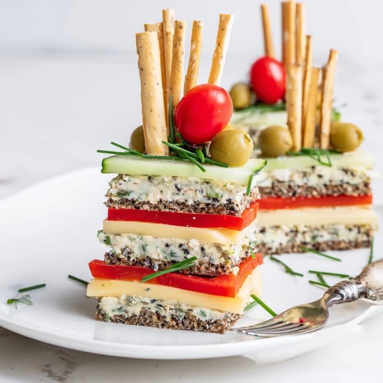 - Verwenden Sie Kräuter-Frischkäse als Kleber, um Gemüsescheiben (Gurke, Paprika, Avocado) zwischen den Schichten oder oben für Farbe und Höhe zu befestigen.